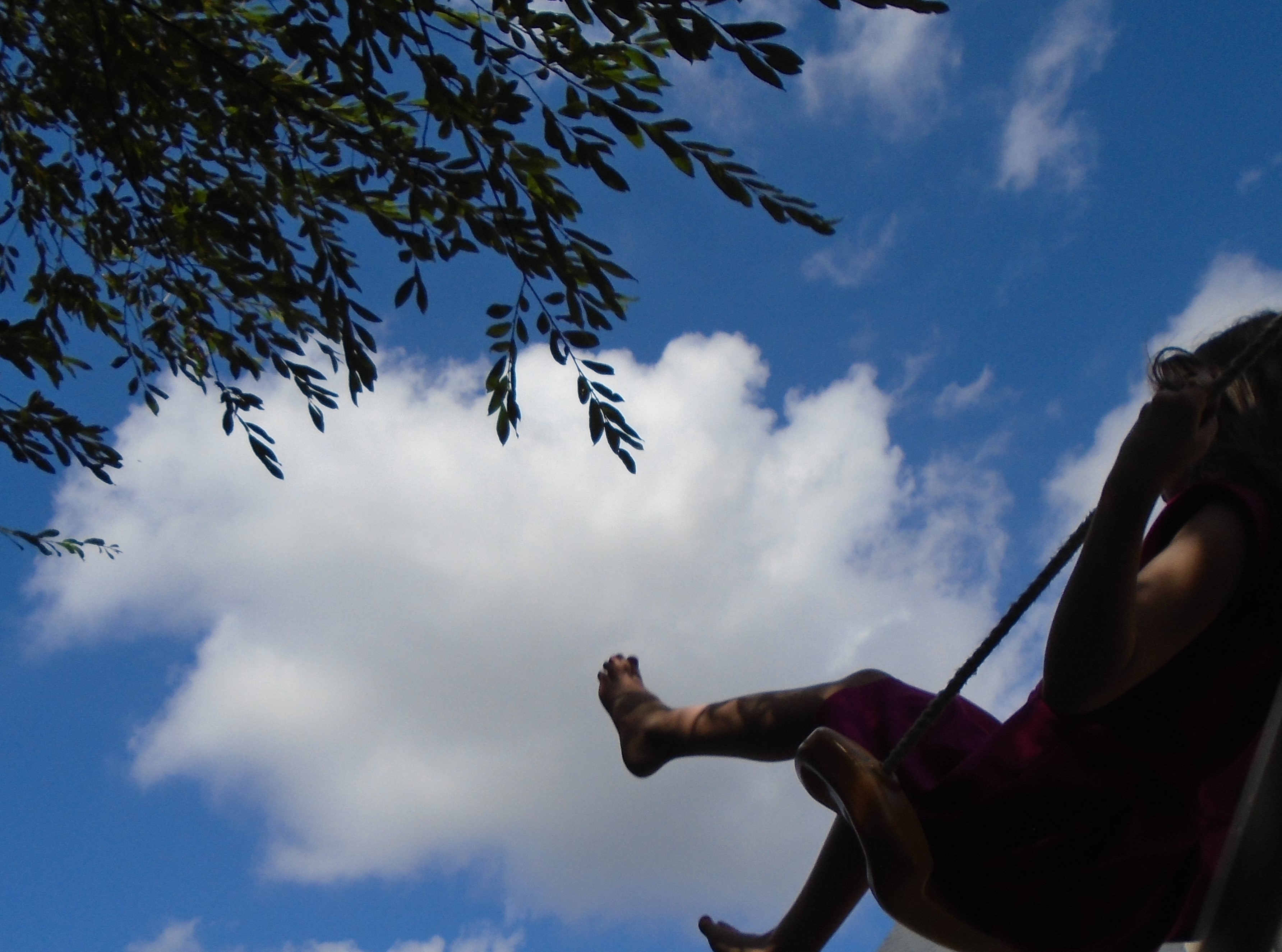 Un été de 2018, sur la balançoire, ma fille allait si haut, qu'elle en avait la tête renversée et voyait ses pieds dans le ciel. Elle le criait bien fort : "mes pieds dans le ciel!! mes pieds dans le ciel!!", tellement heureuse de ce moment.