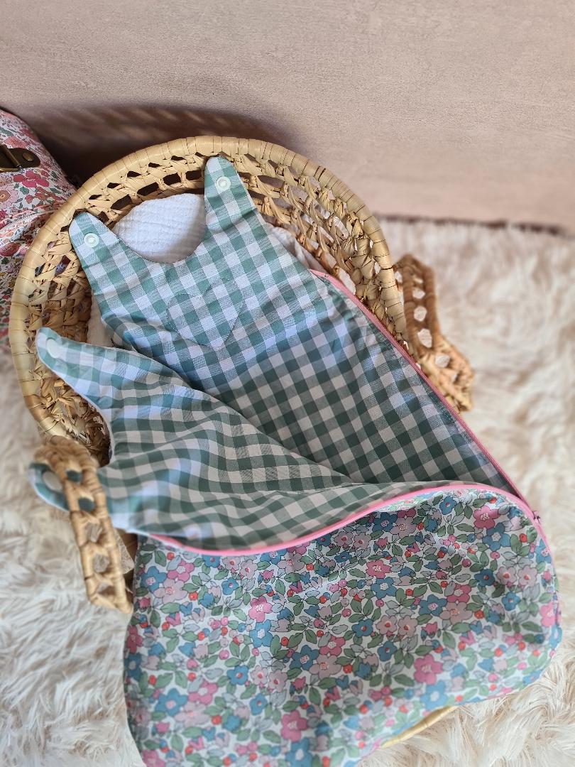 Cette turbulette a tout l'air d'une vraie mais en format mini. Elle est triplée de ouate, se ferme par un zip sur le côté et 2 pressions sur les épaules.